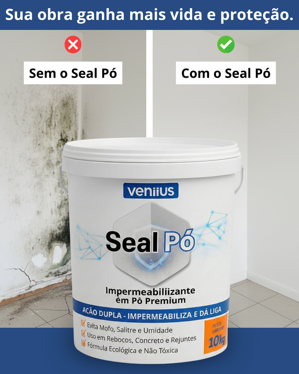 Impermeabilizante em Pó de Alta Eficiência e Longa Duração - Veniius Seal Pó