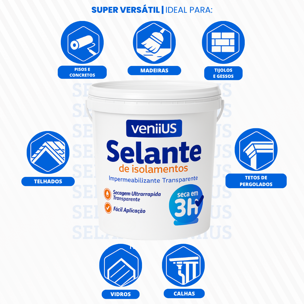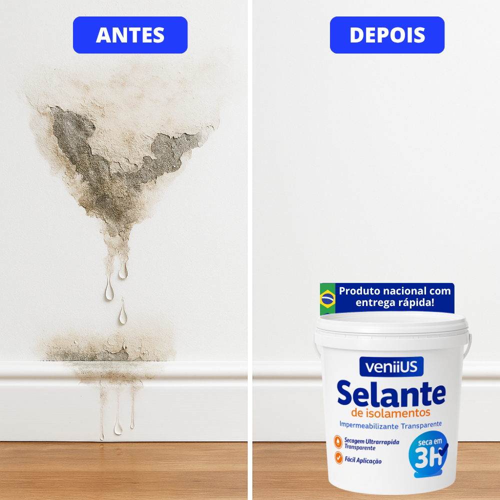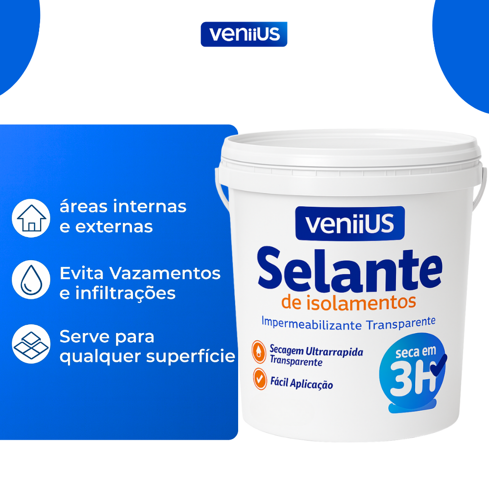 O Selante Veniius foi feito pra resolver isso de vez. Ele cria uma camada protetora super resistente, que bloqueia totalmente a entrada de água — e o melhor: sem alterar a aparência da superfície.